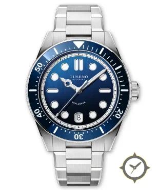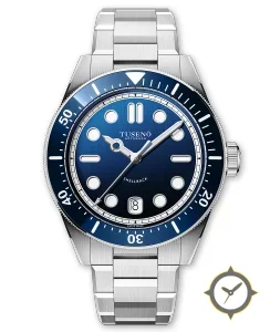 A Dive watch with a versatile 39.5mm case, that suits most wrists, crafted from stainless steel featuring a blue dial with a unique sunburst finish.