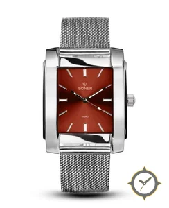 A Dress watch with a vintage-inspired 36.5mm case, crafted from stainless steel featuring a brown dial with a unique sunburst finish.