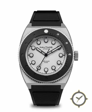A Dive watch with a bold 48mm presence on the wrist, crafted from stainless steel featuring a white dial with a unique matte finish.