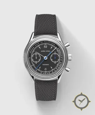 A Chronograph watch with a bold 44mm presence on the wrist, crafted from stainless steel featuring a black dial with a unique matte finish.