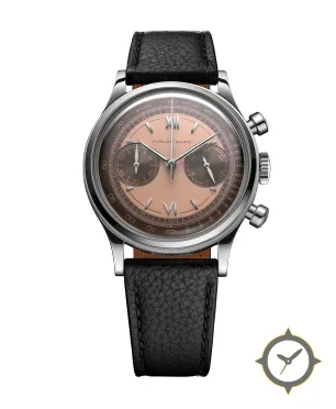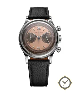 A Chronograph watch with a vintage-inspired 36.5mm case, crafted from stainless steel featuring a brown dial with a unique gradient (fumé) finish.