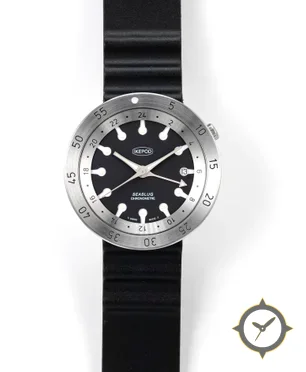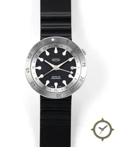 A GMT watch with a bold 42.5mm presence on the wrist, crafted from stainless steel featuring a black dial with a unique matte finish and a true GMT complication for tracking a second time zone.