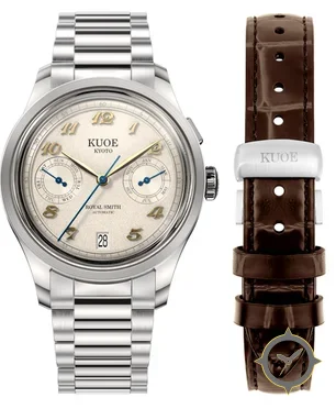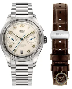 A Dress watch with a vintage-inspired 33mm case, crafted from stainless steel featuring a white dial with a unique linen/grained texture finish.