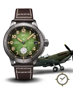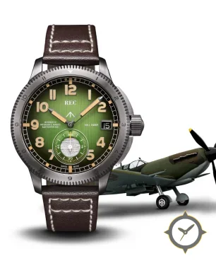 A Pilot watch with a bold 42.5mm presence on the wrist, crafted from stainless steel featuring a green dial with a unique vertical-brushed/sunburst finish.