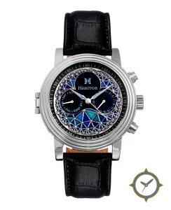 A Dress watch with a versatile 38mm case, that suits most wrists, crafted from stainless steel featuring a blue dial with a unique enamel/guilloché mosaic finish.