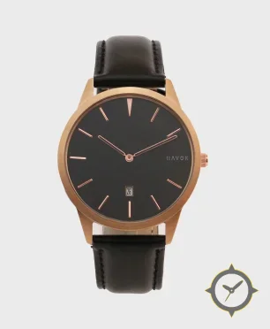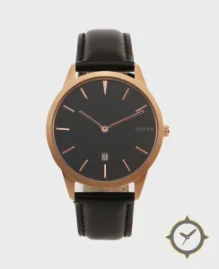A Minimalist watch with a bold 46.5mm presence on the wrist, crafted from gold featuring a black dial with a unique matte finish.
