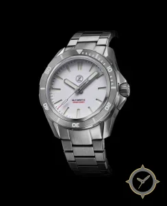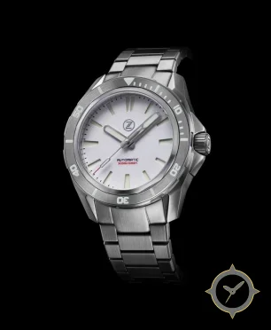 A Dive watch with a bold 49mm presence on the wrist, crafted from stainless steel featuring a white dial with a unique grained/matte finish.
