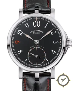 A Dress watch with a bold 43mm presence on the wrist, crafted from stainless steel featuring a black dial with a unique lacquer finish.