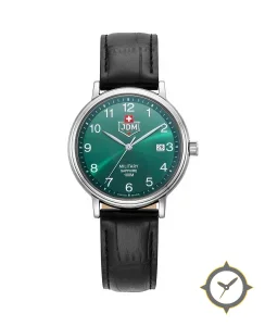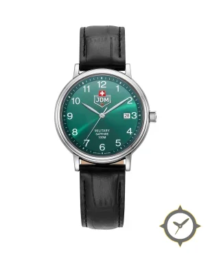 A Military watch with a versatile 38.5mm case, that suits most wrists, crafted from stainless steel featuring a green dial with a unique sunburst finish.