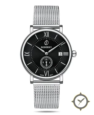 A Dress watch with a bold 42mm presence on the wrist, crafted from stainless steel featuring a black dial with a unique textured guilloché outer ring with smooth inner dial finish.