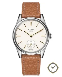 A Dress watch with a versatile 38.5mm case, that suits most wrists, crafted from stainless steel featuring a white dial with a unique smooth matte finish.