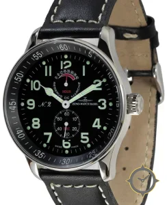 A Pilot watch, crafted from stainless steel featuring a black dial with a unique matte finish and a helpful power reserve indicator.