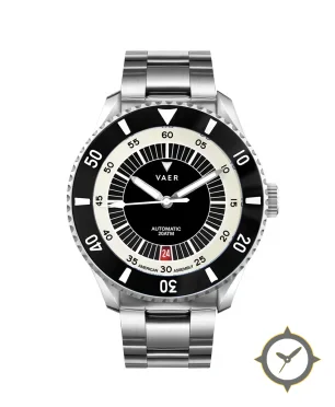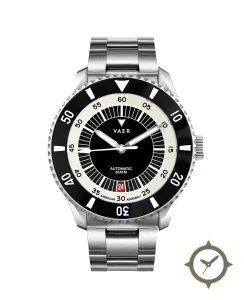 A Dive watch with a bold 47mm presence on the wrist, crafted from stainless steel featuring a black dial with a unique matte finish.