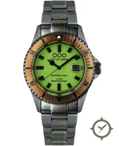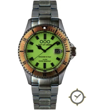 A Dive watch with a bold 44.5mm presence on the wrist, crafted from stainless steel featuring a green dial with a unique luminous matte finish.