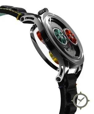 A Skeleton watch with a bold 47mm presence on the wrist, crafted from stainless steel featuring a black dial with a unique skeletonized/open-worked metal finish.