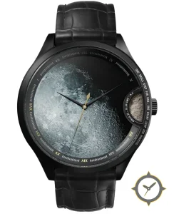 A Dress watch with a bold 47.5mm presence on the wrist, crafted from stainless steel featuring a black dial with a unique printed lunar surface motif (textured print) finish.