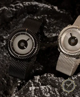 A Dress watch with a vintage-inspired 35mm case, crafted from stainless steel featuring a white dial with a unique ribbed radial sunburst finish.