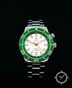 A Dive watch with a versatile 39.5mm case, that suits most wrists, crafted from stainless steel featuring a white dial with a unique wavy guilloche (wave texture) finish.