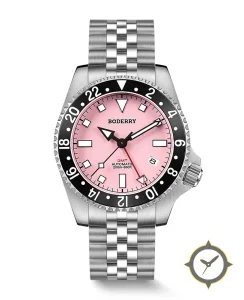 A GMT watch with a bold 45mm presence on the wrist, crafted from stainless steel featuring a red dial with a unique lacquer finish and a true GMT complication for tracking a second time zone.