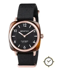 A Dress watch with a vintage-inspired 35.5mm case, crafted from resin featuring a black dial with a unique matte finish.