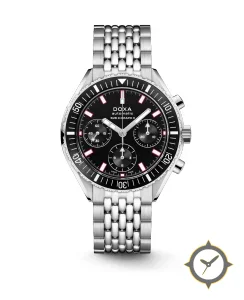 A Dive watch with a bold 44.5mm presence on the wrist, crafted from stainless steel featuring a black dial with a unique matte finish.