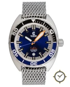 A Dive watch with a bold 45mm presence on the wrist, crafted from stainless steel featuring a blue dial with a unique sunburst finish.