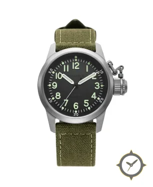 A Field watch with a versatile 39mm case, that suits most wrists, crafted from stainless steel featuring a black dial with a unique matte finish.