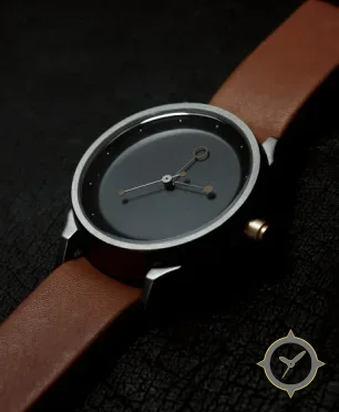 A Minimalist watch with a vintage-inspired 36.5mm case, crafted from stainless steel featuring a gray dial with a unique matte finish.