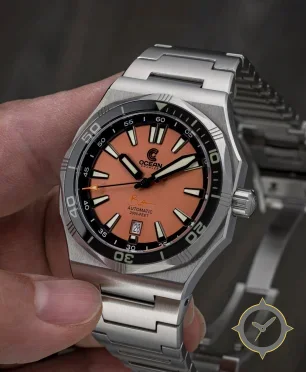 A Dive watch with a versatile 39.5mm case, that suits most wrists, crafted from stainless steel featuring a orange dial with a unique matte finish.