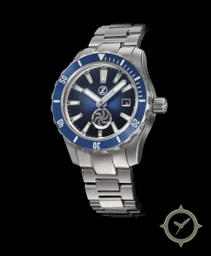 A Dive watch with a bold 47mm presence on the wrist, crafted from stainless steel featuring a blue dial with a unique sunburst finish.