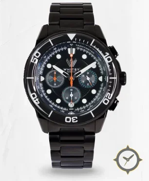 A Dive watch with a vintage-inspired 37.5mm case, crafted from stainless steel featuring a black dial with a unique glossy with subtle concentric wave texture finish.