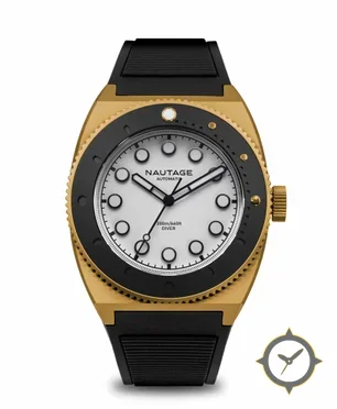A Dive watch with a versatile 38mm case, that suits most wrists, crafted from bronze featuring a striking white dial.