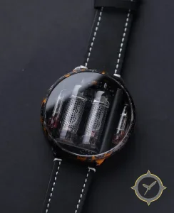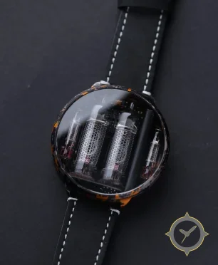 A Skeleton watch with a bold 55mm presence on the wrist, crafted from resin featuring a black dial with a unique transparent / exposed vacuum tubes (tube display visible) finish.