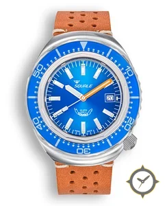 A Dive watch with a bold 44.5mm presence on the wrist, crafted from stainless steel featuring a blue dial with a unique sunburst finish.