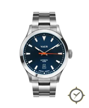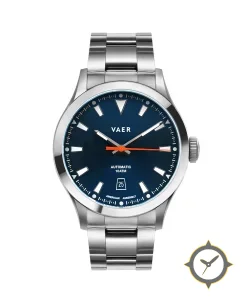 A Sports watch with a vintage-inspired 37mm case, crafted from stainless steel featuring a blue dial with a unique sunburst (radial gradient) finish.