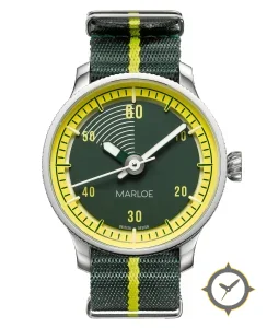 A Driver watch with a vintage-inspired 35mm case, crafted from stainless steel featuring a green dial with a unique matte finish.