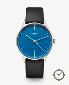 A Minimalist watch with a vintage-inspired 35.5mm case, crafted from stainless steel featuring a blue dial with a unique lacquer finish.