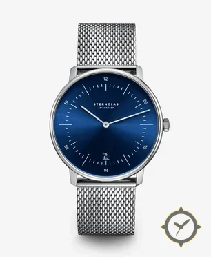 A Dress watch with a bold 42.5mm presence on the wrist, crafted from stainless steel featuring a blue dial with a unique sunburst finish.