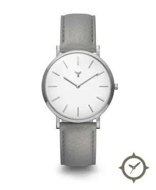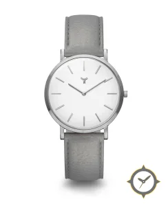A Minimalist watch with a bold 42.5mm presence on the wrist, crafted from stainless steel featuring a white dial with a unique matte finish.