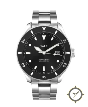 A Dive watch with a vintage-inspired 37.5mm case, crafted from stainless steel featuring a black dial with a unique matte sunburst finish.