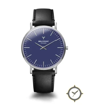A Minimalist watch with a bold 41.5mm presence on the wrist, crafted from stainless steel featuring a blue dial with a unique matte finish.