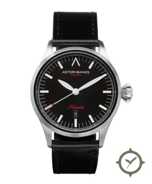 A Pilot watch with a bold 46mm presence on the wrist, crafted from stainless steel featuring a black dial with a unique matte finish.