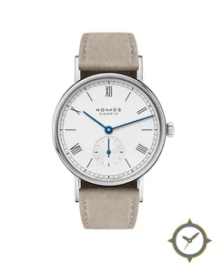A Dress watch with a vintage-inspired 35.5mm case, crafted from stainless steel featuring a white dial with a unique matte lacquer finish.