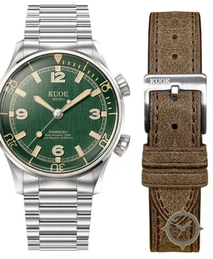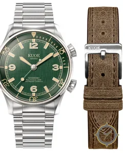 A Dive watch with a bold 45.5mm presence on the wrist, crafted from stainless steel featuring a green dial with a unique sunburst finish.