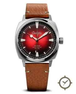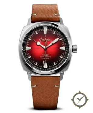 A Field watch with a bold 44.5mm presence on the wrist, crafted from stainless steel featuring a red dial with a unique sunburst gradient (fumé) finish.