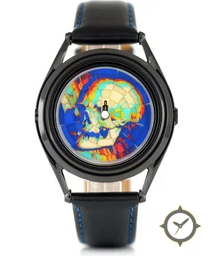 A Vintage watch with a vintage-inspired 31mm case, crafted from stainless steel featuring a blue dial with a unique printed multi-layer enamel-like finish finish.