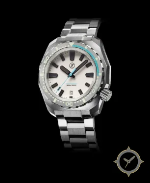 A Dive watch with a bold 47mm presence on the wrist, crafted from stainless steel featuring a white dial with a unique matte finish.