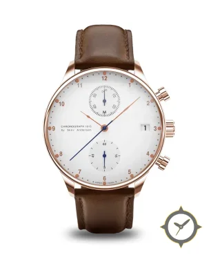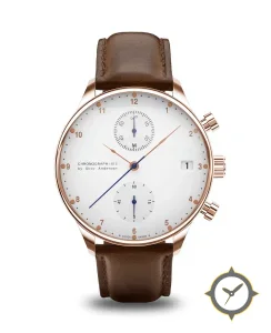 A Chronograph watch with a versatile 38.5mm case, that suits most wrists, crafted from gold featuring a white dial with a unique lacquer (matte enamel) finish.