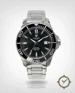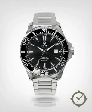 A Dive watch with a bold 46mm presence on the wrist, crafted from stainless steel featuring a black dial with a unique matte finish.