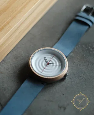 A Minimalist watch with a vintage-inspired 31mm case, crafted from bronze featuring a silver dial with a unique concentric ripple finish.